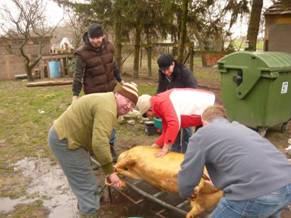 Február 9-én, szombaton tartottuk a hagyományos farsangi disznóvágó mulatságot és táncképzést, melynek során Dezső disznó a mennybe ment…