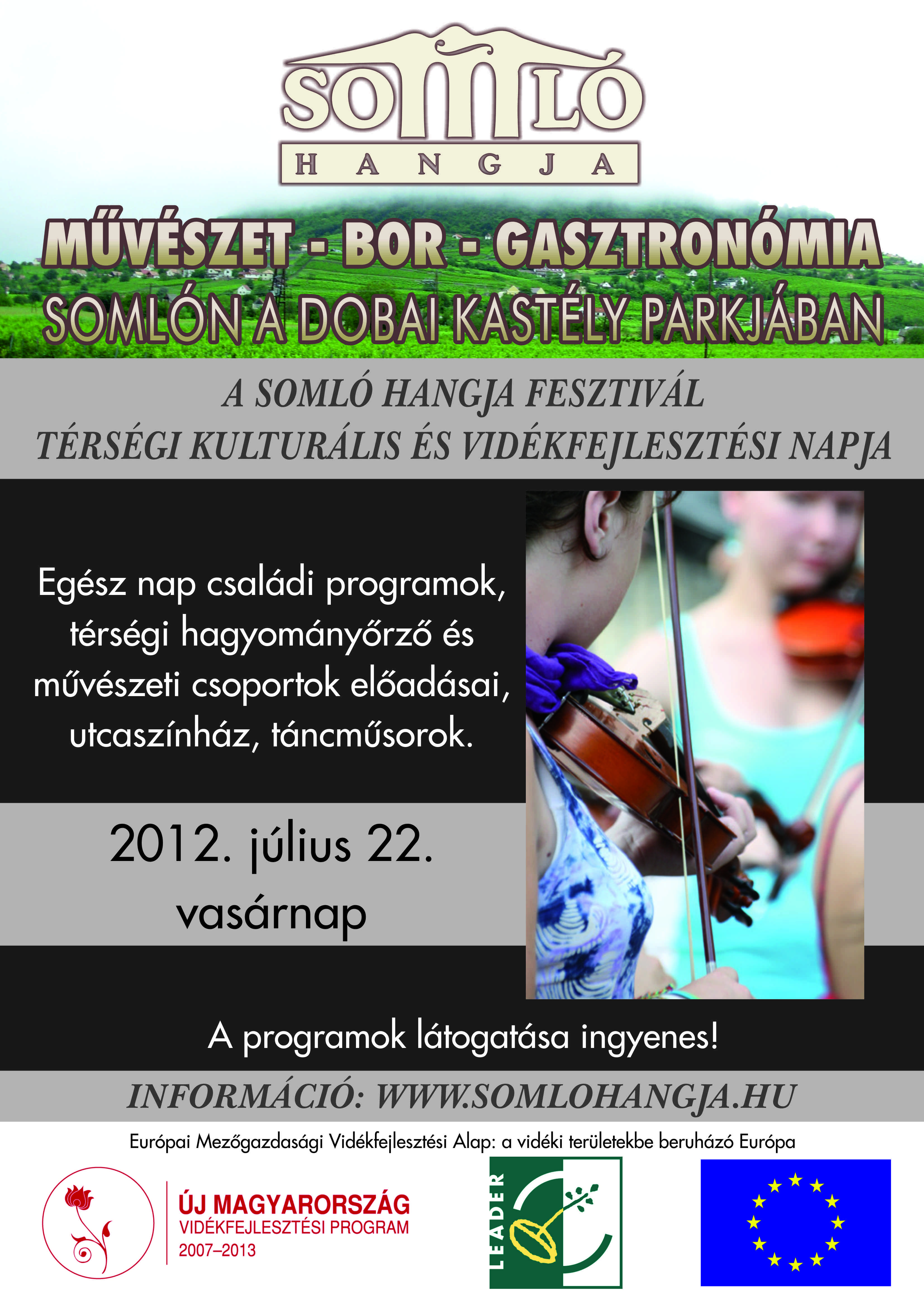 Borvásár és borkiállítás Dobán, a Somló Hangja Fesztiválhoz kapcsolódva. A Somló legkiválóbb borai mellett más borvidékek különlegességeit is megkóstolhatják a vendégek.