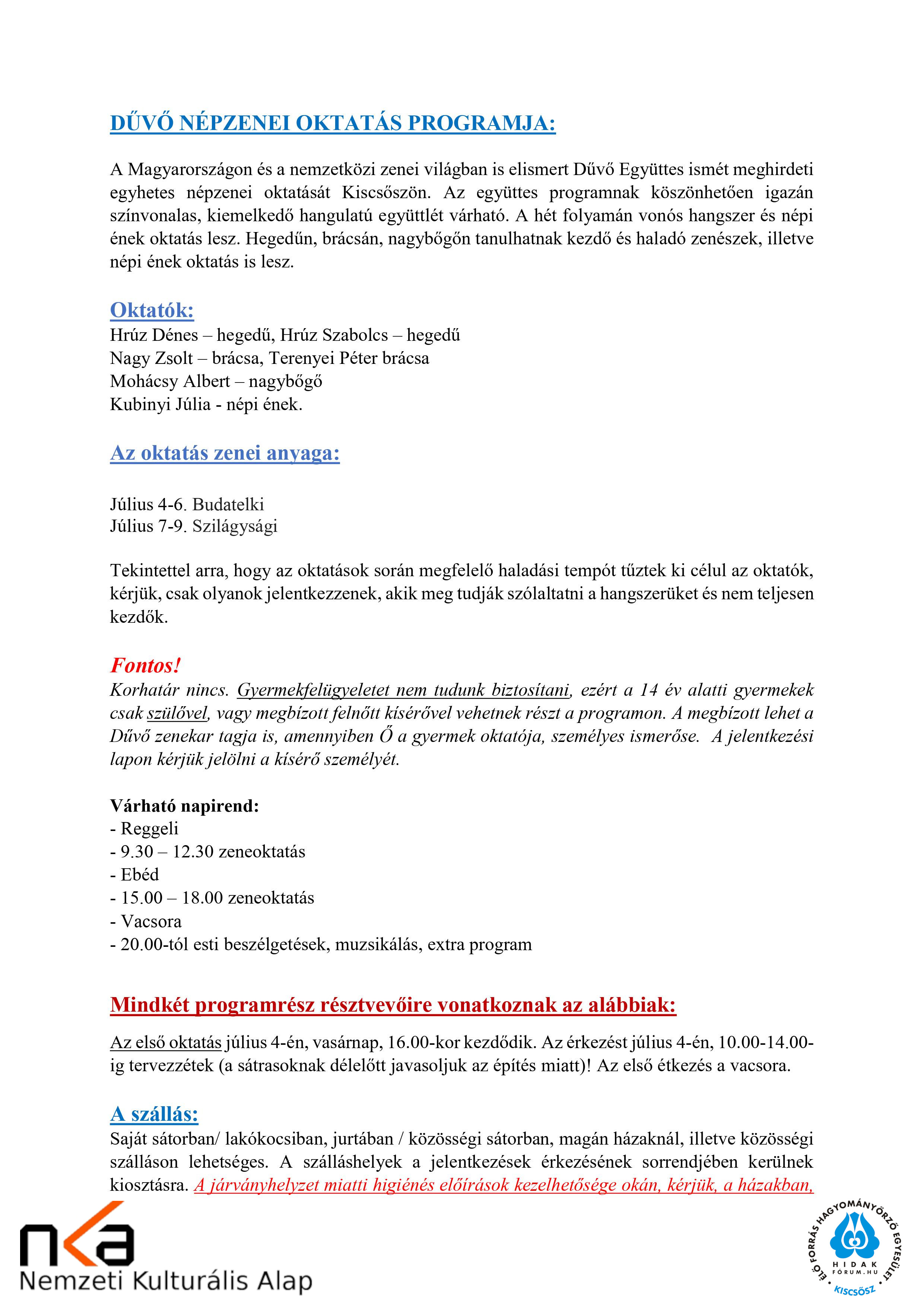Dűvő Népzenei Oktatás jelentkezési lap letöltése