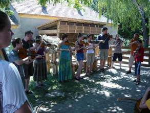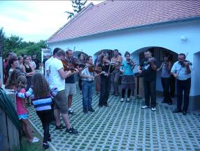 Ezt követően indult a pajtakoncertek sora. A Dűvő népzenei tábor záró koncertjén harminc tanítvány muzsikált a Dűvő zenekarral Gyöngyi Pajtája előtt.