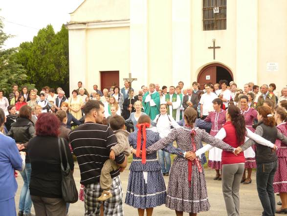 A templomból kiérkező híveket és egyházi személyiségeket néptáncosok várták, akik a régi hagyományokhoz hasonlóan leánykarikázót jártak a templom előtt, majd rövid csárdás tánc után a falu központjába vezették a vendégeket. A közönséget itt Sallai Flórián és cigányzenekara várta, akik a cigányzene egyetlen térségi képviselői.