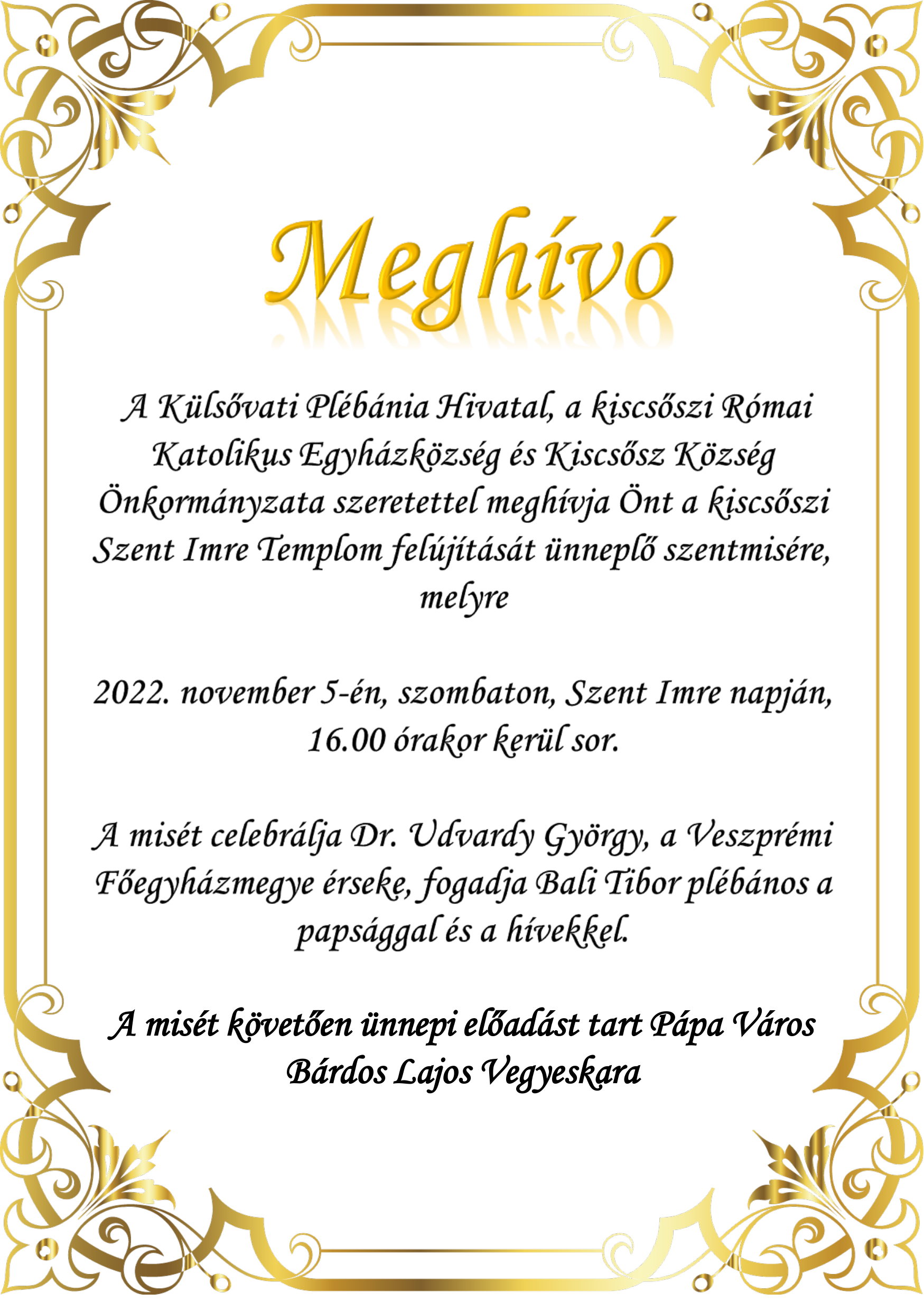 2022 Szent Imre-napi Búcsú és templom felújítása alkalmából tartott szentmise