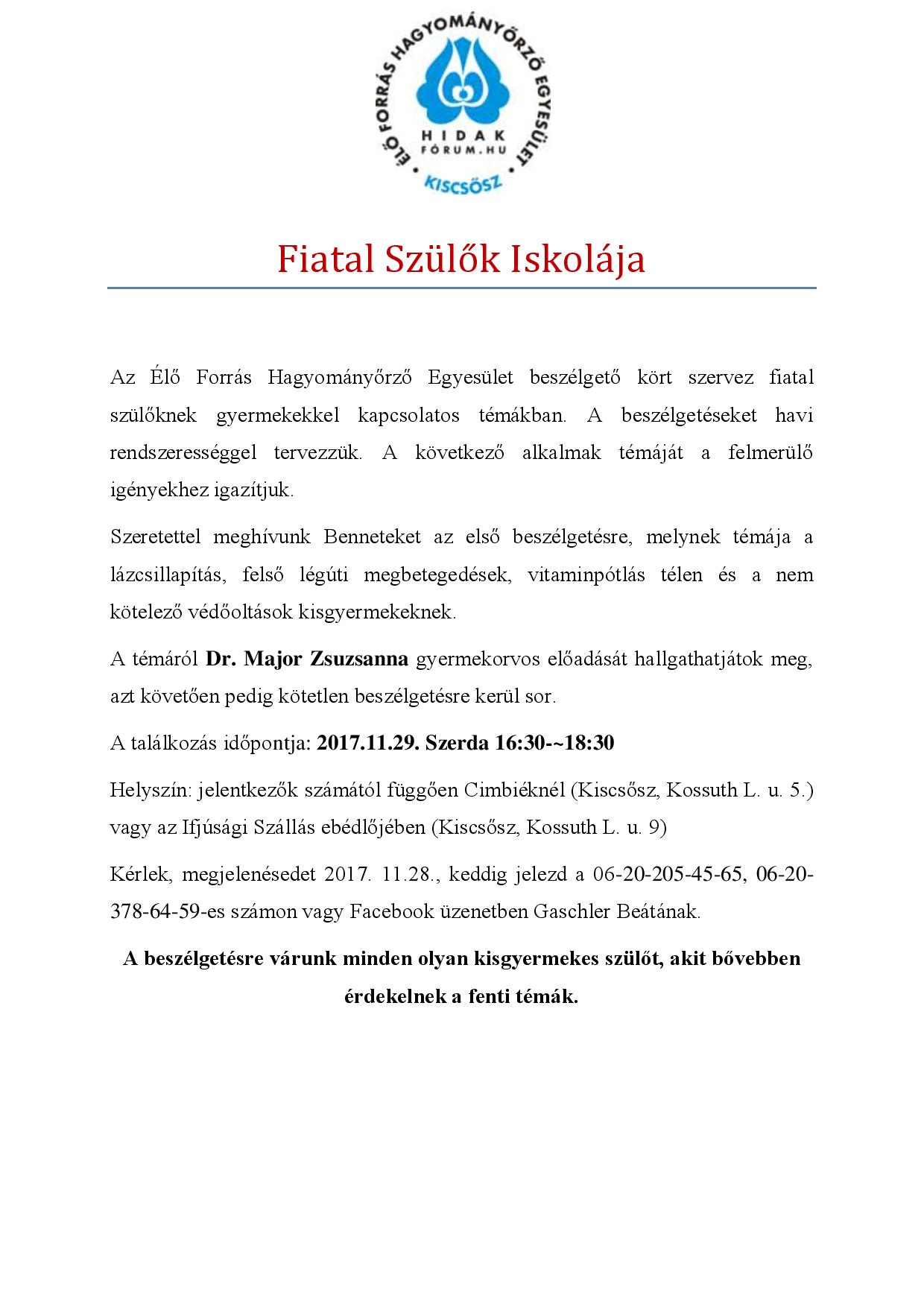 Fiatal szülők iskolája Kiscsőszön