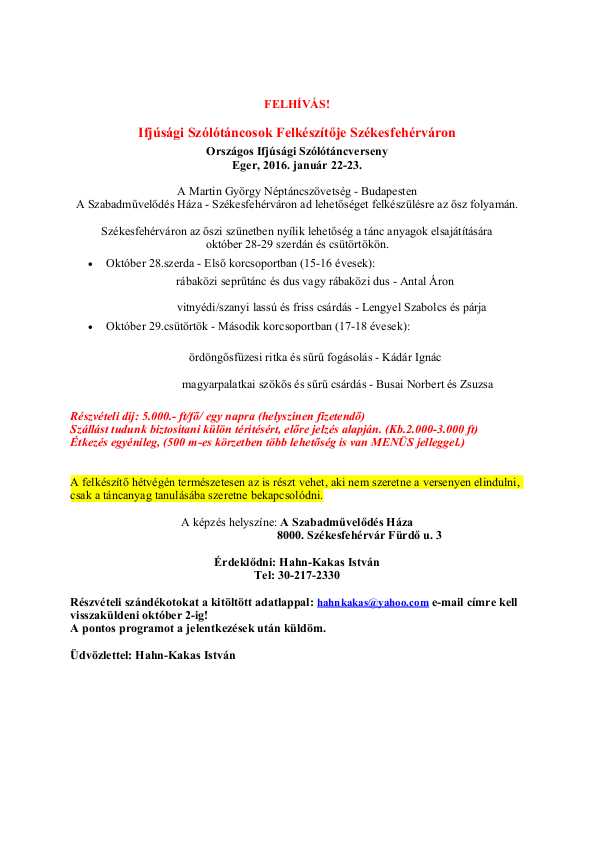 A program időpontja: 2015. szeptember 24-25-26-27.