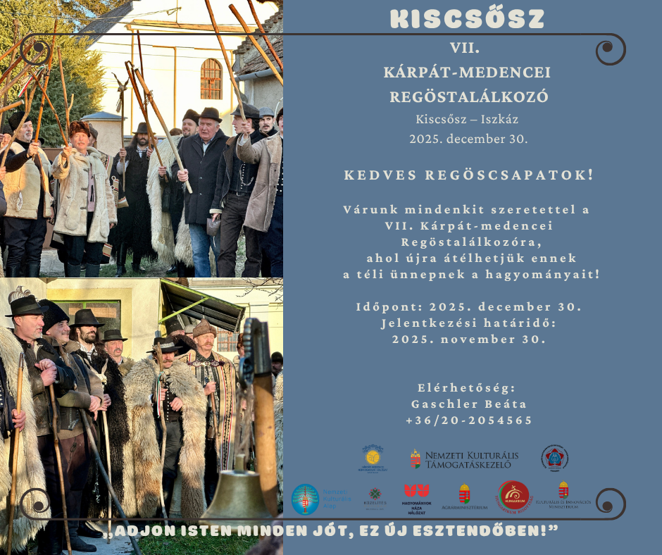 Szeretettel hívunk és várunk benneteket a VII. Kárpát-medencei Regös Találkozóra, amely idén is Kiscsőszön és Iszkázon kerül megrendezésre.