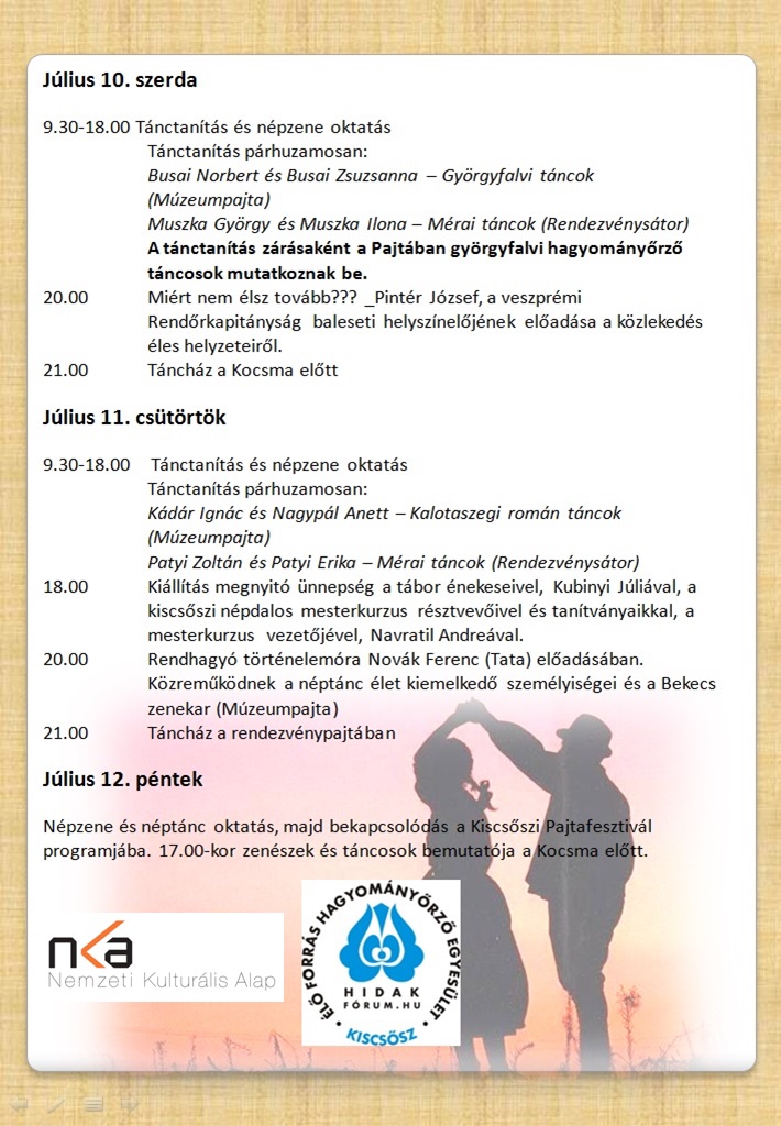 A Muravidéki Magyar Napok, valamint a XIV. Nemzetközi Halászléfőző Verseny keretében megszervezzük Lendván a Határon innen és túl XI. nemzetközi néptáncfesztivált.