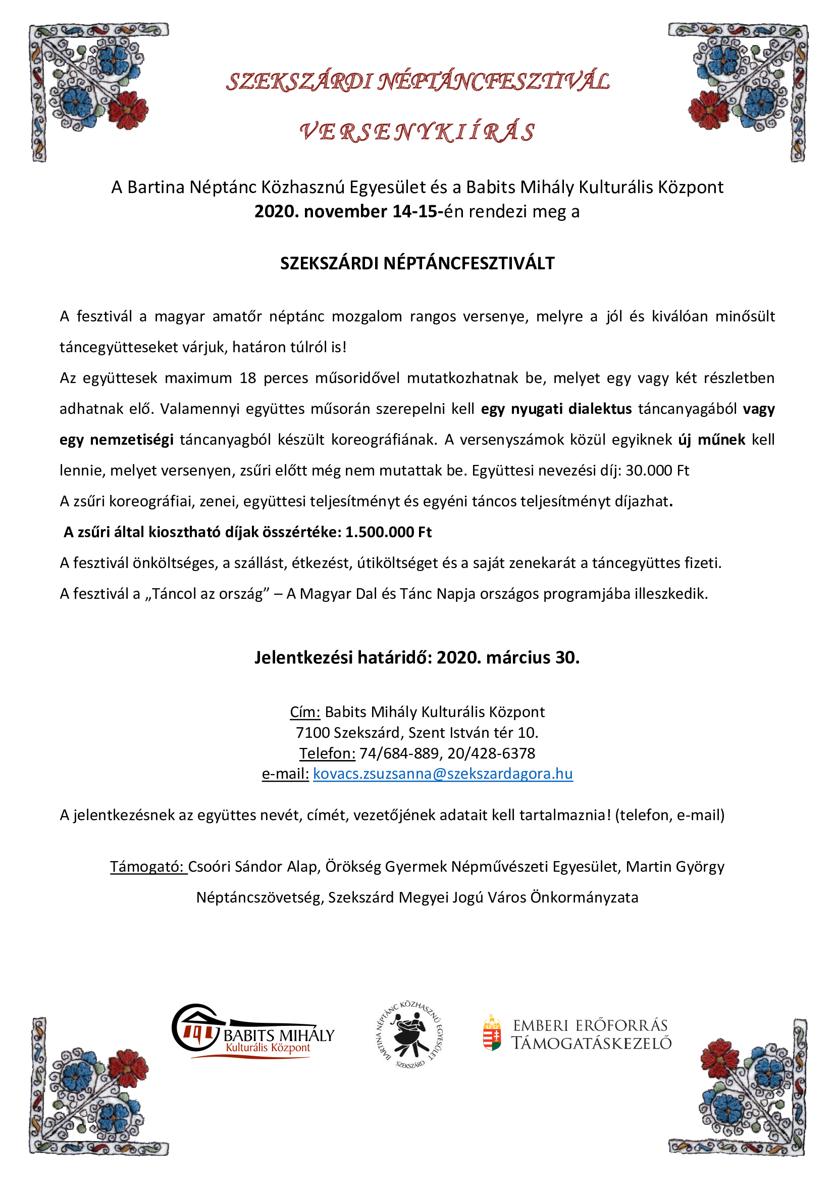 2020 "Húzd keresztül...!" Közép-Dunántúl régió Gyermek és Ifjúsági Néptáncegyütteseinek VIII. Fesztiválja