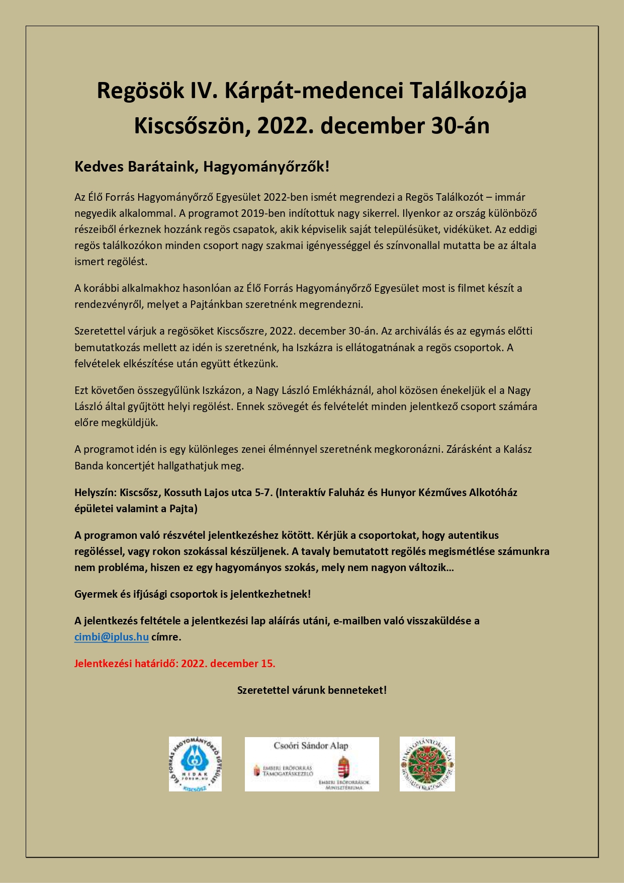 2022 Regösök IV. Kárpát-medencei Találkozója Kiscsőszön